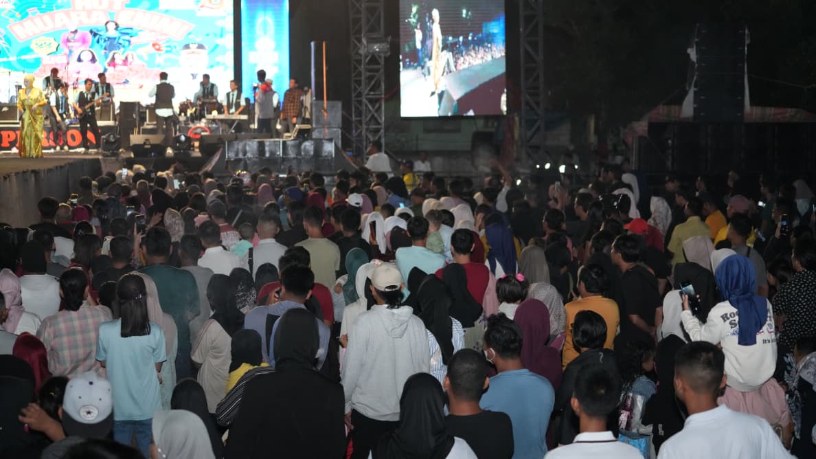 Malam puncak hiburan rakyat dalam rangka Hari Jadi Kabupaten Muara Enim ke-79 Tahun 2025 dihibur Diva Dangdut Legendaris Rita Sugiarto, di Lapangan Merdeka Kota Muara Enim, Sabtu malam 22 November 2025. Foto : ANDRE/ENIMEKSPRES.CO.ID--