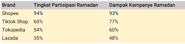 Dengan tingginya intensitas belanja selama periode ini, para platform e-commerce pun saling adu strategi lewat kampanye tematik yang kompetitif dan menarik, seperti Shopee Big Ramadan Sale, Ramadan Ekstra Seru di TikTok Shop dan Tokopedia, serta Ramadan Mega Sale Lazada.