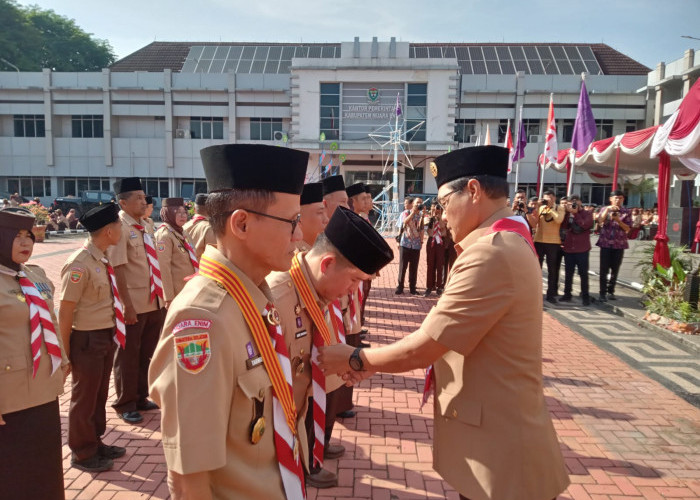 Plt Bupati Kaffah yang hadir bersama unsur Forkopimda Kabupaten Muara Enim, Sekretaris Daerah Yulius, mengucapkan selamat memperingati Hari Gerakan Pramuka ke-62 pada 14 Agustus 2023.